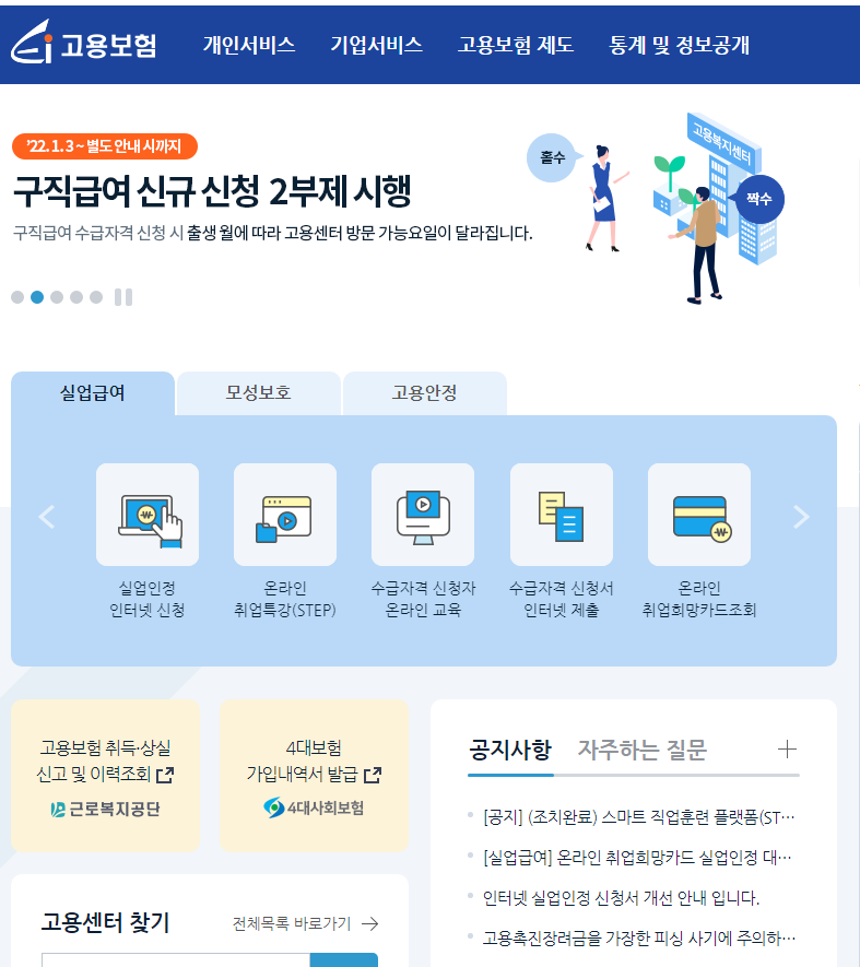 1. 근처 고용센터 방문 또는 우편, 팩스로 접수